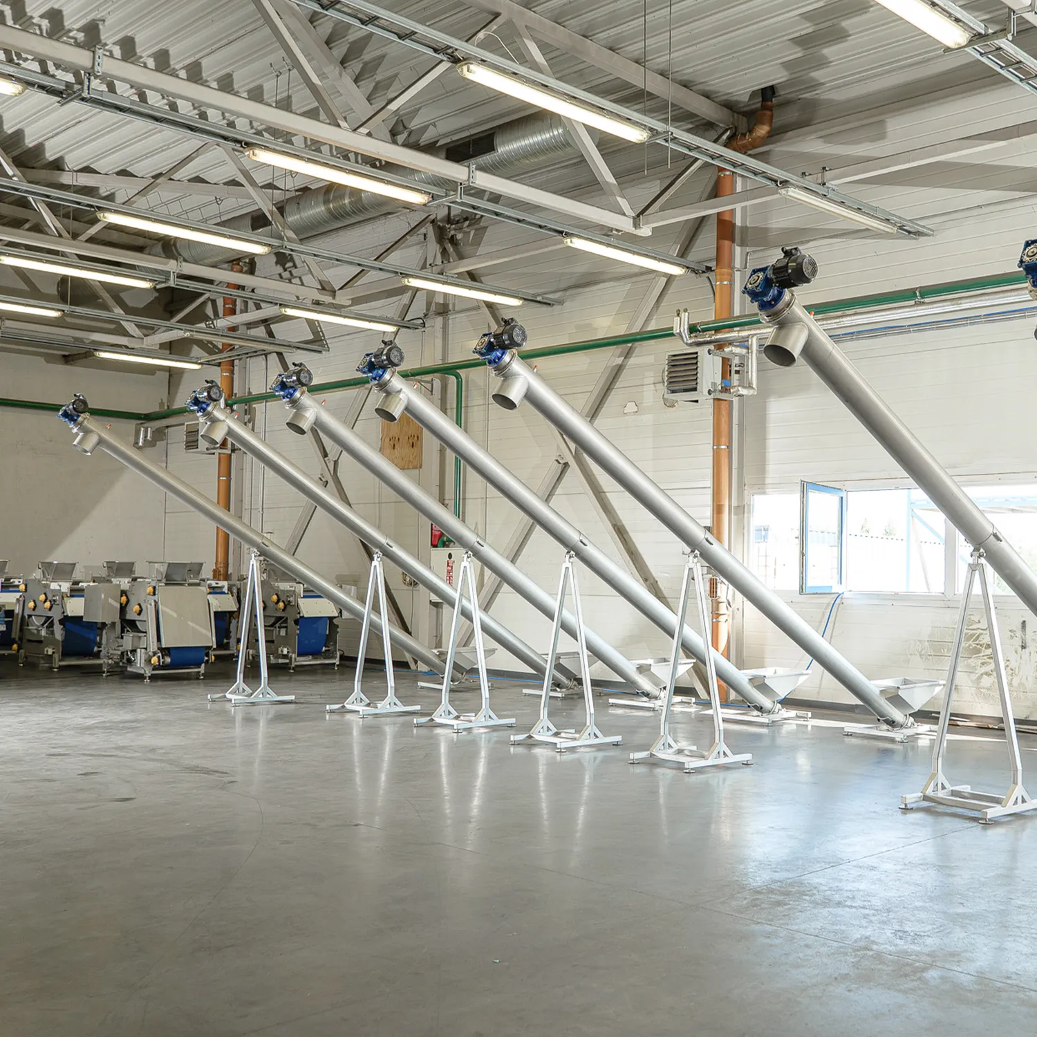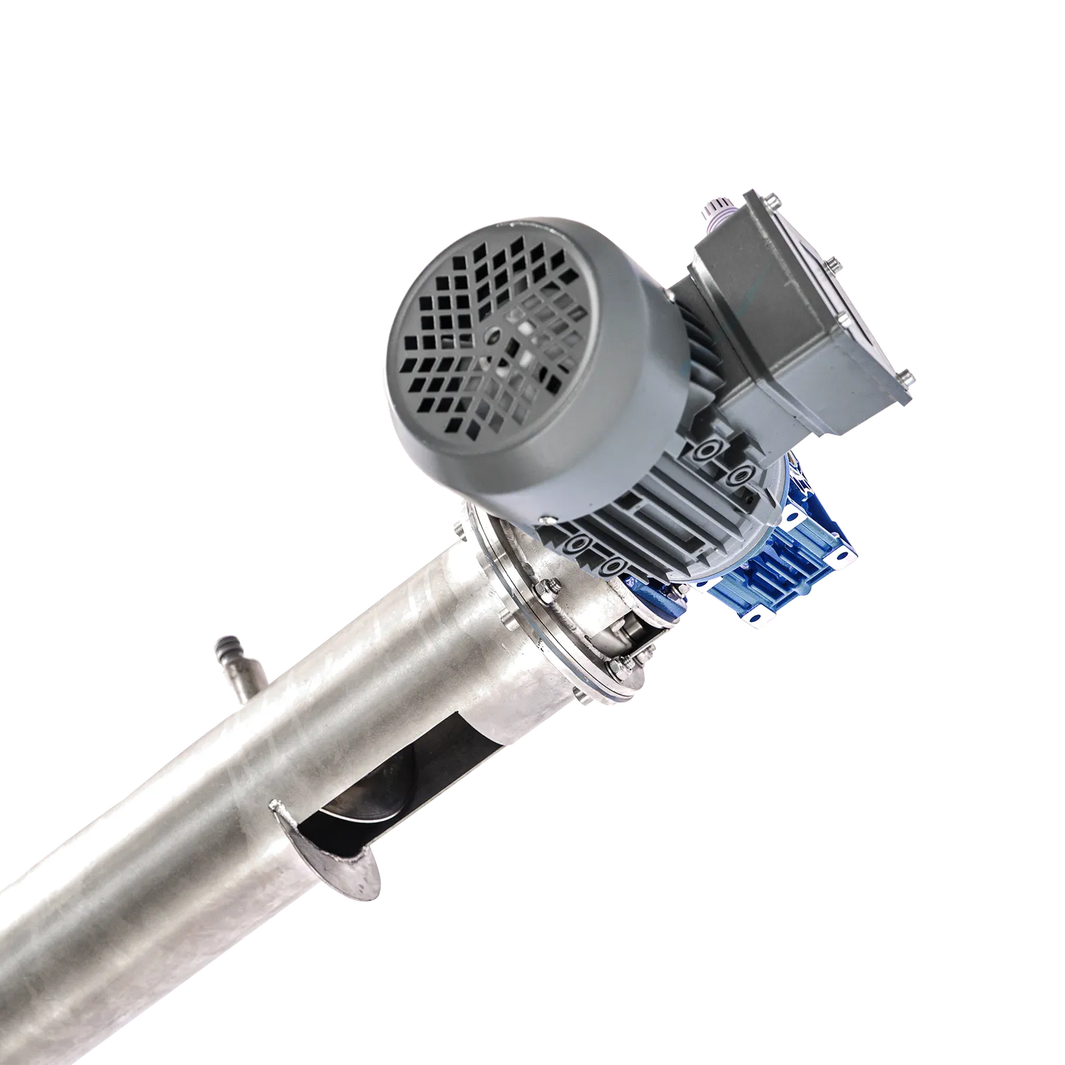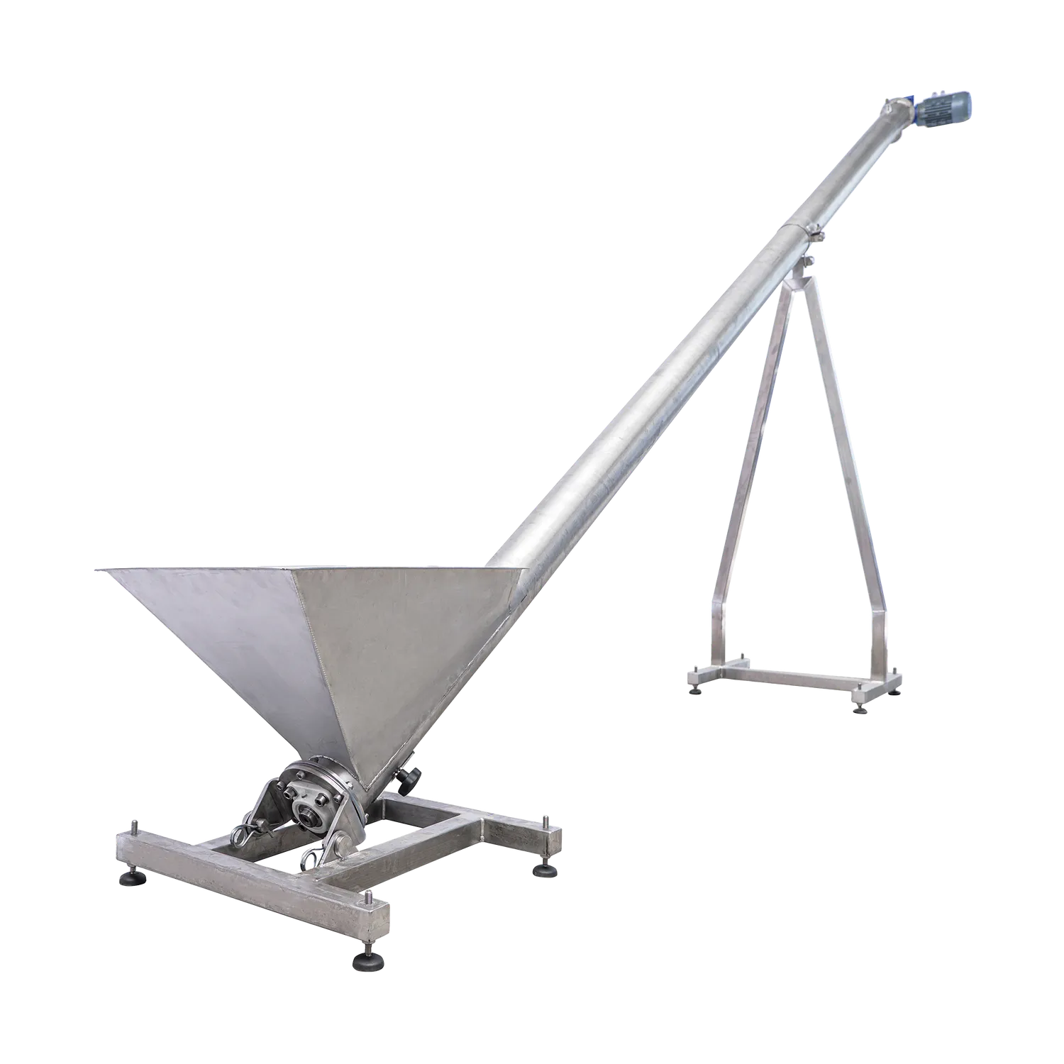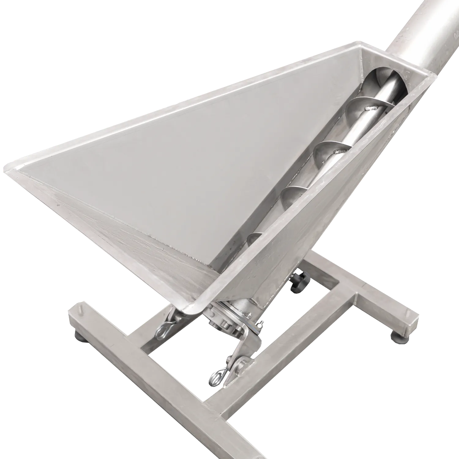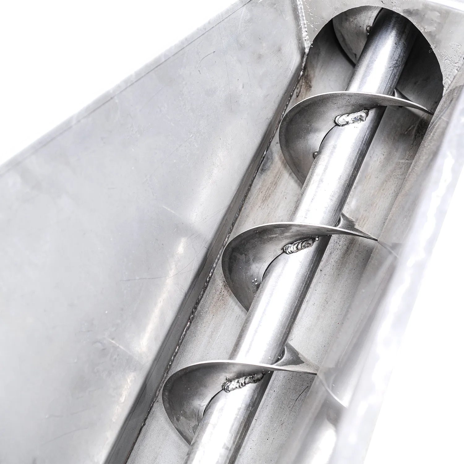 Transportskrue for transport av fruktkjøttrester fra beltepressen. Når fruktkjøttet er presset til most, gjenstår det rester som må transporteres bort fra systemet. Ved hjelp av en transportskrue skjer transporten automatisk. Inne i maskinen er det en stor skrue som kontinuerlig transporterer restene bort fra pressen. Transporten skjer i maskinens lukkede kanal og går ut gjennom utløpet som er plassert på toppen av transportskruen. Maskinen er laget av rustfritt stål for god holdbarhet og lang levetid. Transportøren brukes sammen med en beltepresse og er kompatibel med flere ulike modeller. Transportskruen er tilgjengelig i lengder på 3 meter og 4 meter.